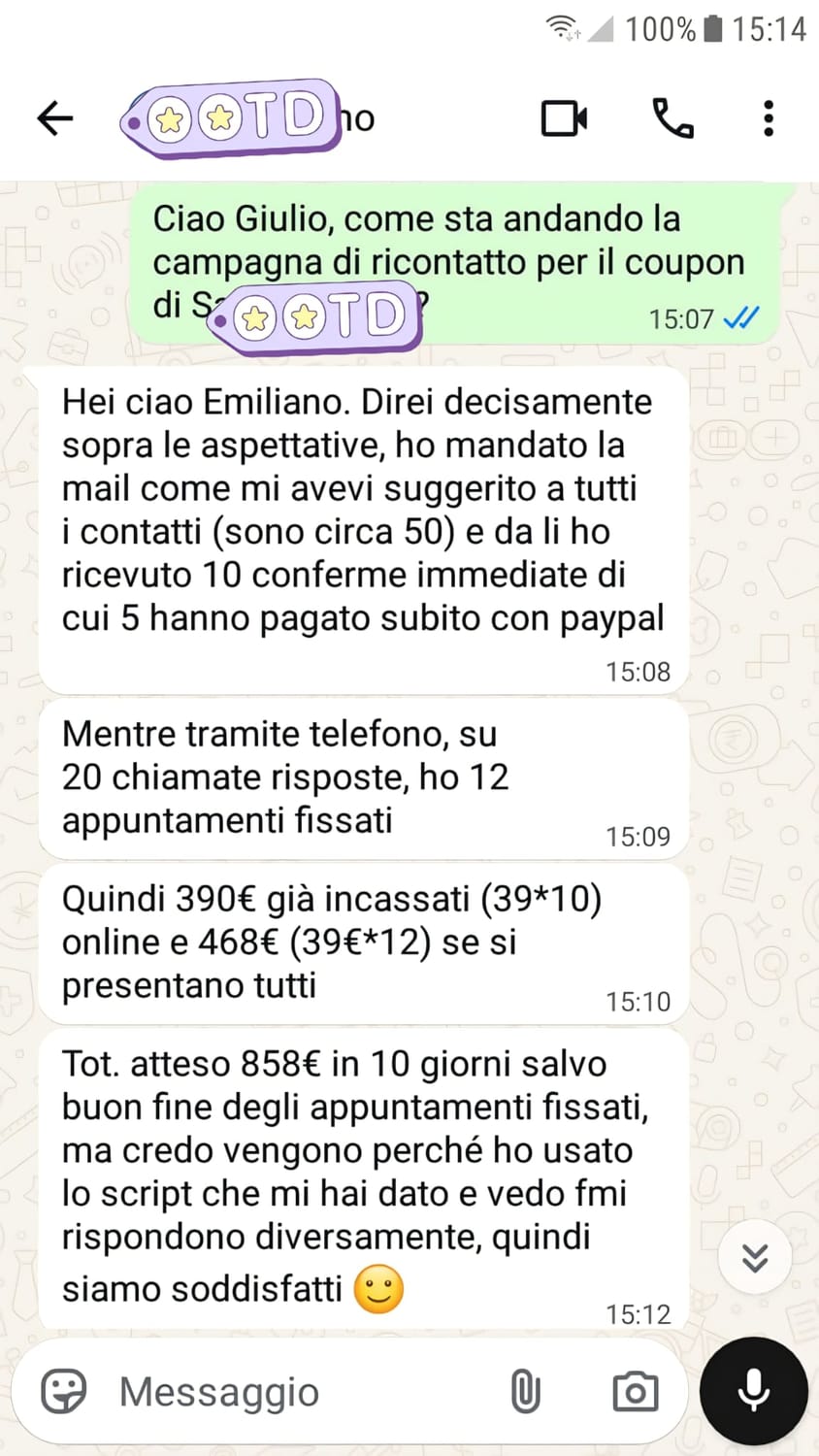 Una selezione dei miei migliori messaggi WhatsApp che nel tempo hanno dimostrato di funzionare alla perfezione per riattivare clienti e vendere offerte senza dover per forza alzare la cornetta, un risparmio di tempo notevole, incassi facili e poco sforzo